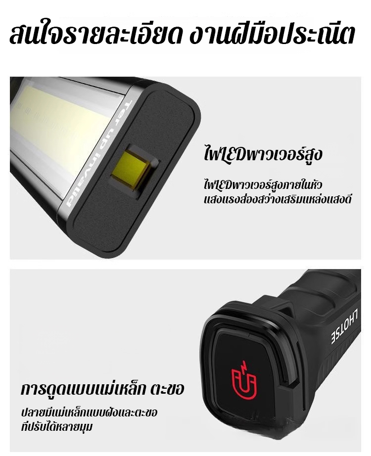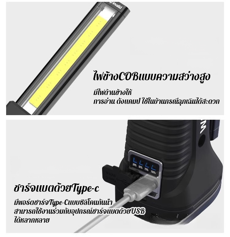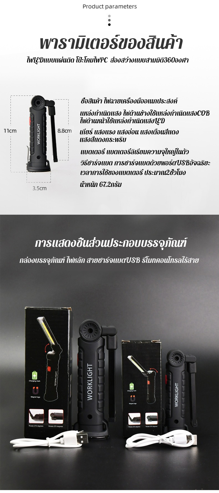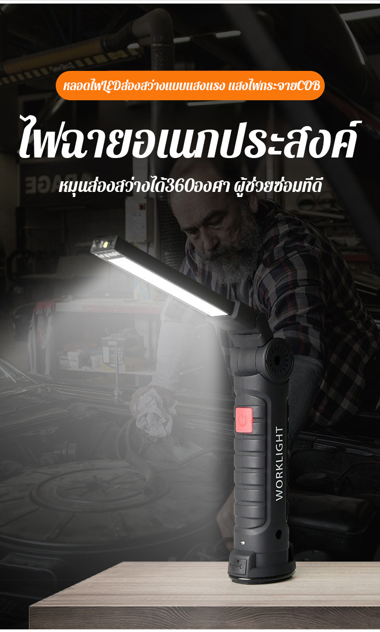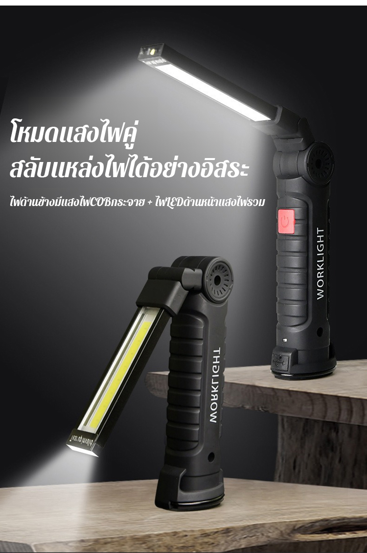 ไฟฉายอเนกประสงค์ COB LED: พับได้ 360° พร้อมแม่เหล็กแรงสูง - สว่างจ้า ชาร์จ USB เหมาะสำหรับซ่อมรถและแคมป์ปิ้ง